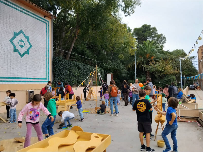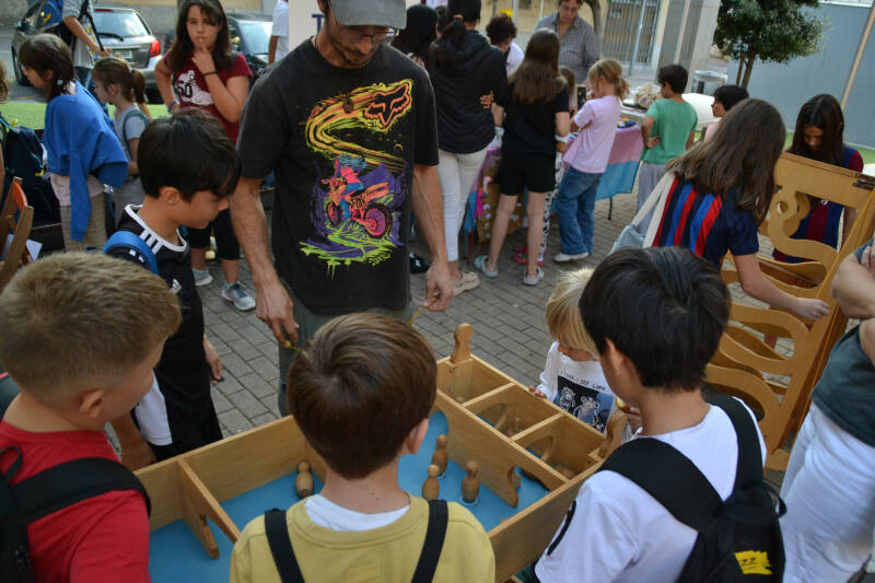 Les nostres instal·lacions de fusta estan fetes a mà, conserven el color natural de la fusta per apropar l'artesania al públic. Hi trobareu jocs creatius d'habilitat, enginy i equilibri, joc simbòlic i material per explorar reptes de punteria, força, coordinació, construcció, paciència, cooperació, competició, treball en equip, motricitat, etc.